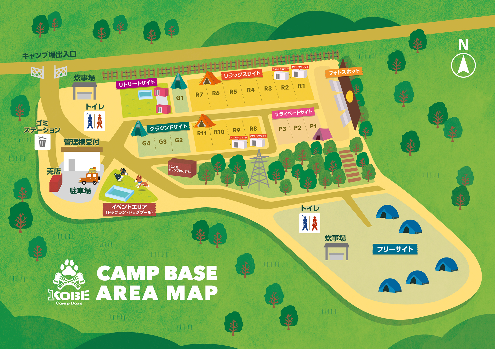1KOBE Camp Baseを一望できる場内マップです。
